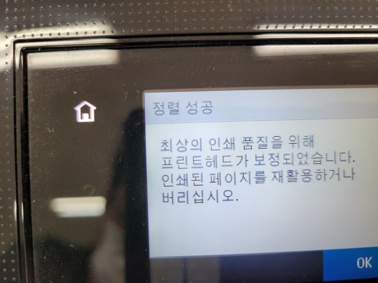 정상적으로 헤드 정렬 페이지가 출력되어 나오고 성공했습니다.