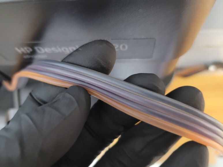 HP T120 24인치의 HP 711 헤드를 탄성접착제를 얇게 도포하고 테이핑하여 보강했습니다.