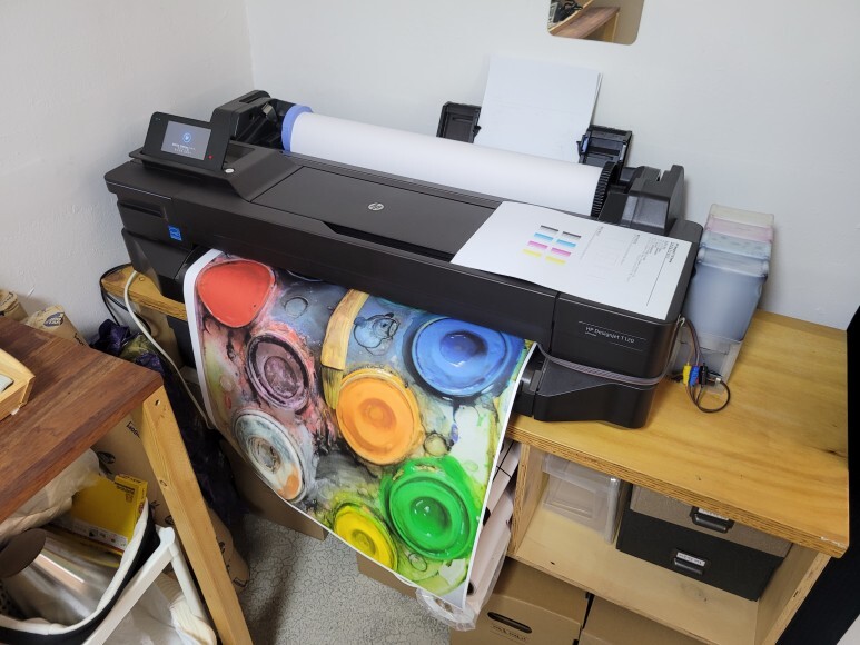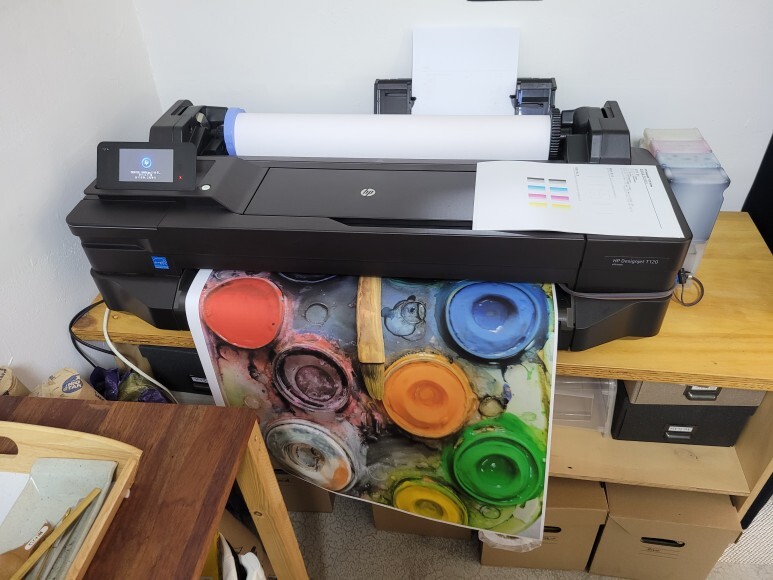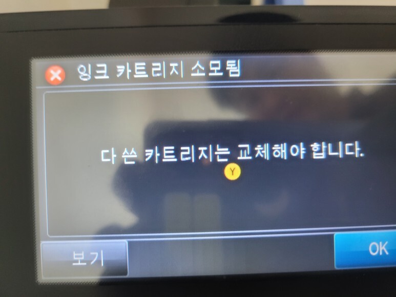 HP T120 24인치 무한잉크 플로터인데 Y 잉크 카트리지 소모됨 문제로 멈춰 있었습니다.