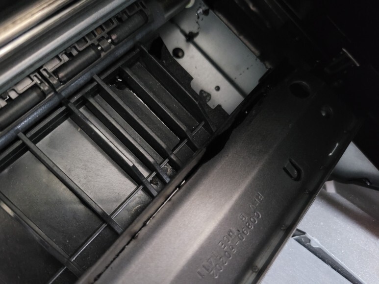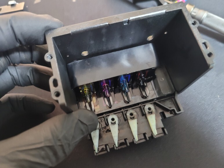 상판부를 열어 보니 스타휠 구간에 잉크 흔적으로 헤드 챔버가 터졌음을 알 수 있었습니다. 헤드 터짐, 뇌출혈.