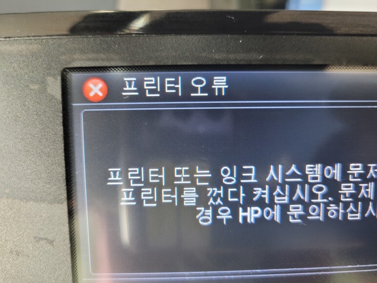 HP T120 24인치 플로터의 프린터 오류, 잉크 시스템 문제로 멈춰 있었습니다.