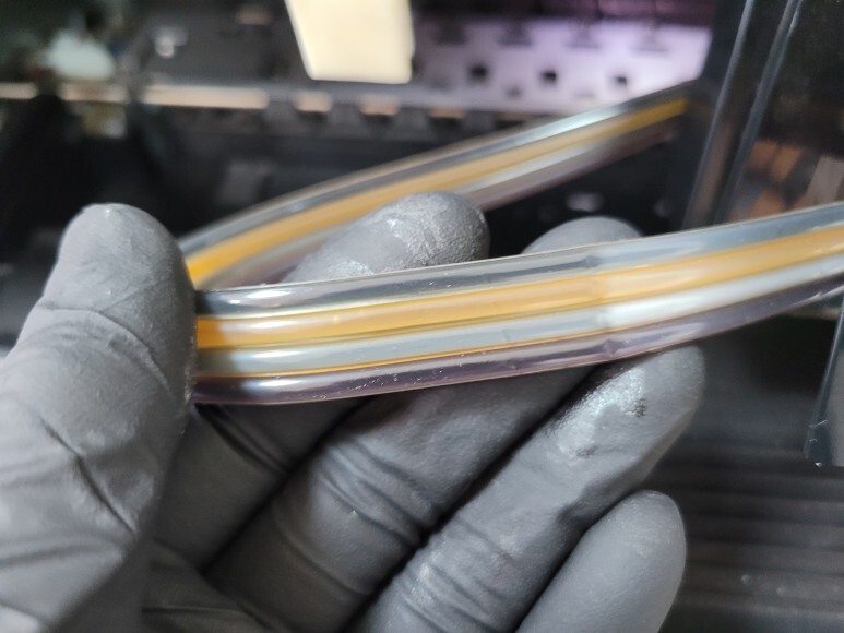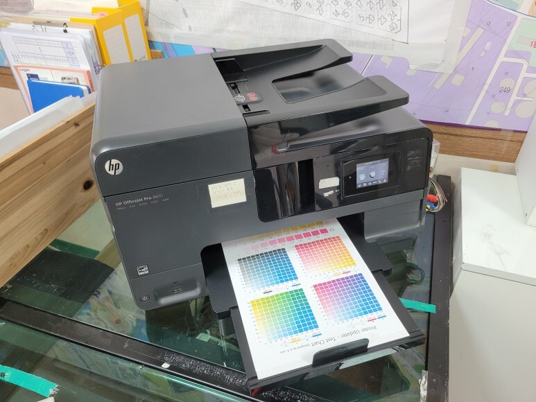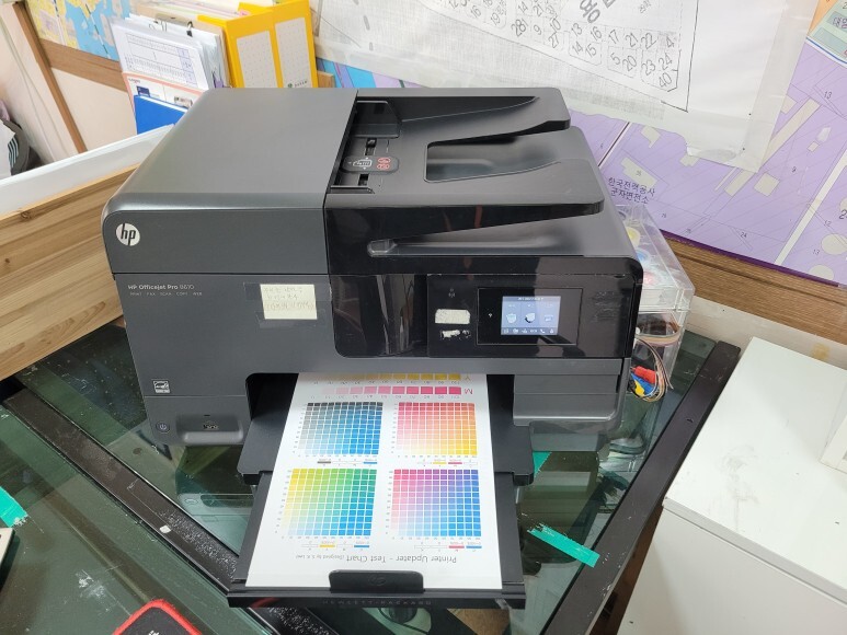 HP 8610 팩스복합기 무한잉크, 잉크 카트리지 소모됨 문제로 멈춰 있었습니다. 구동에 부담스럽게 잉크 공급선 호스가 너무 무겁고 두꺼운 걸로 되어 있었습니다.