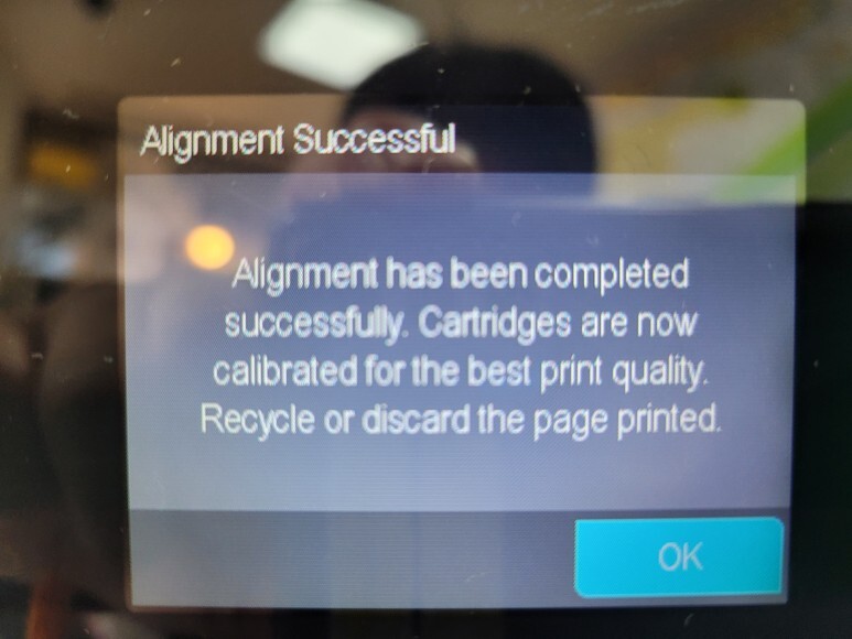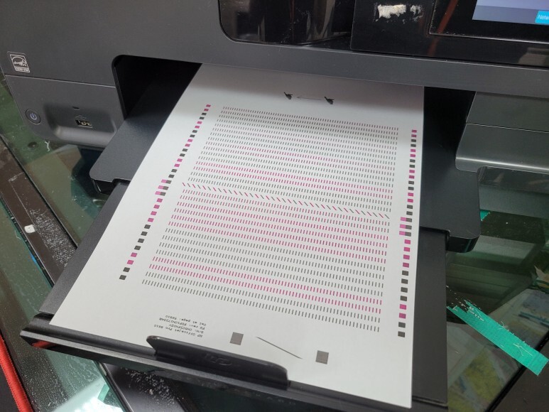 초기화 후에 정상적으로 헤드 정렬 페이지가 출력되어 나왔습니다.