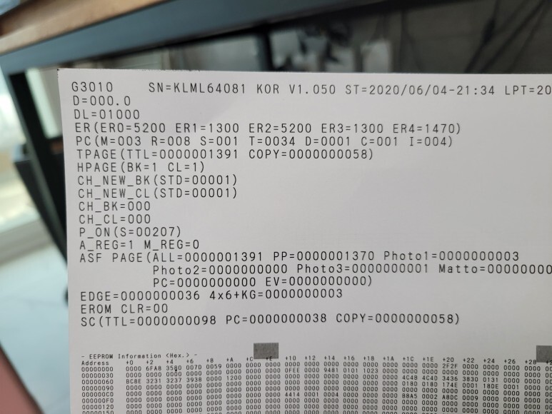 시스템 청소로 호스 및 헤드(카트리지)내부에 잉크를 채우면서 많은 량의 잉크를 프린터 내부의 패드를 쏟아 내기도 했으므로 반드시 프로그램 패드 리셋 작업을 해야 했습니다. 폐잉크 흡수패드에 폐잉크가 가득 차서 뜨는 5B00 에러가 날 수 있습니다. CANON G3900 G3910 복합기 패드 리셋하여 정상적으로 D=0.000 출력되었습니다.