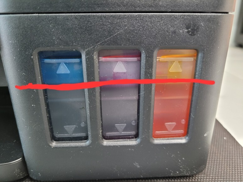 시스템세척 이후에 잉크가 소진되어 잉크통에 50% 정도 잔량이 남았습니다.