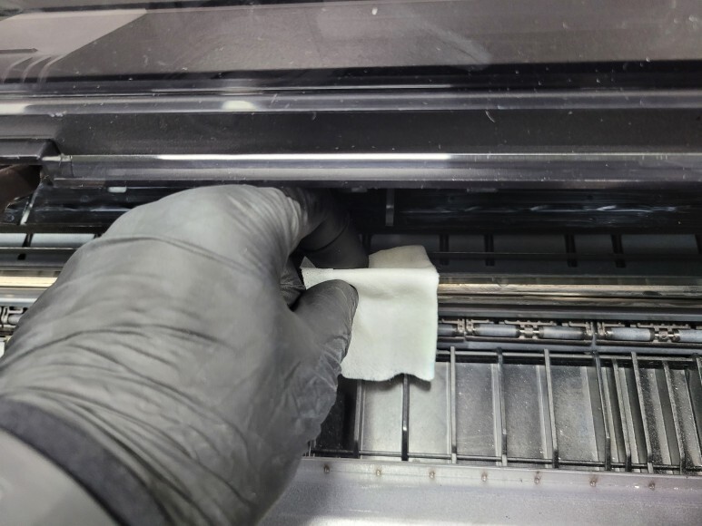 HP T520 36인치 플로터 무한잉크 대형프린터의 오염된 엔코더스트립을 크리닝했습니다.