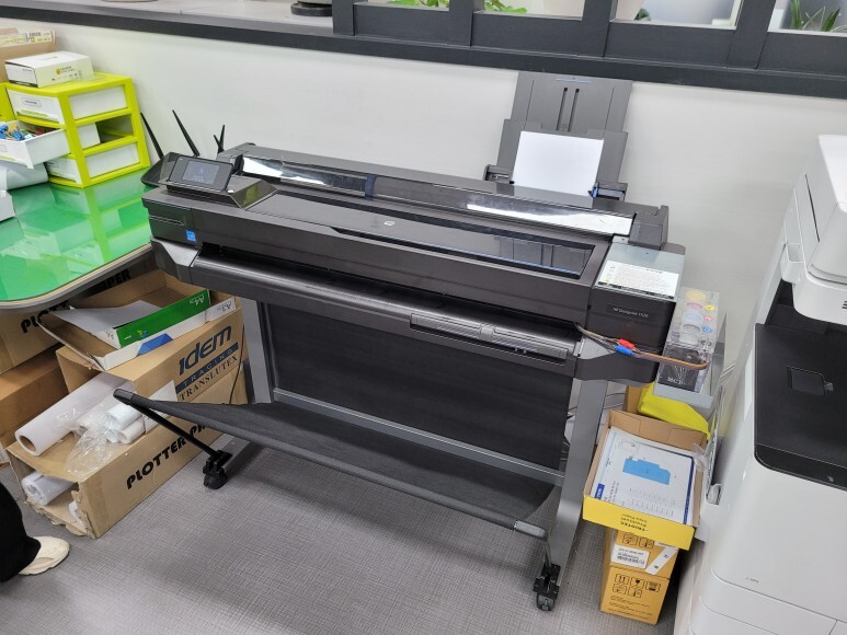경상남도 창원시 의창구 테크노밸리 소재, 건축관련 회사 사무실에서 사용하는 HP T520 36인치 플로터 무한잉크 대형프린터인데 트래싱지 미디로 로드 실패로 출장수리 요청하여 미디어센서 분해 크리닝 및 구동에 문제가 되는 체인 및 브라켓, 잉크 공급선 등등 모두 새걸로 교체 수리 진행했습니다.