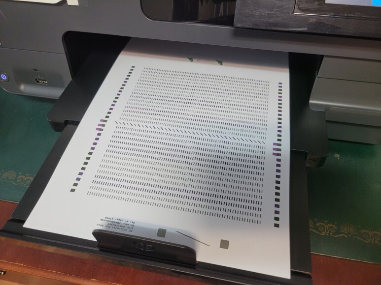 초기화 후에 정상적으로 헤드 정렬 페이지가 출력되어 나왔습니다.