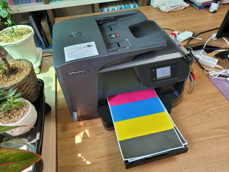 HP 8710 팩스복합기 무한잉크인데 검정색이 전혀 출력이 안되고 있었습니다.