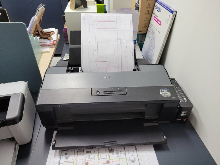 서울 성동구 소재 건축 인테리어 관련 업무용으로 사용하는 엡손 정품무한 L1300 A3 프린터인데 노즐 막힘으로 인해 잦은 노즐 청소로 프린터 잉크 패드의 수명이 다 되었습니다. 엡손 L1300 프린터에서 "프린터 잉크 패드의 서비스 수명이 다 되었습니다."라는 오류 발생으로 프린터 멈춰 출장 수리를 요청하여 스케줄을 잡아 이동 수리 완료했습니다.