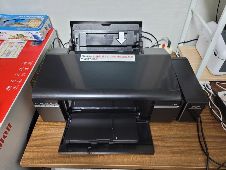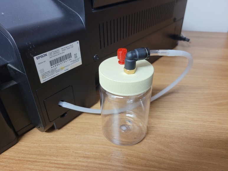 엡손 L805 무한잉크 6색 프린터인데 출력 불량으로 헤드를 분해해서 오랜시간 세정해서 재조립 수리합니다. 제일 먼저 엡손 L805 무한잉크 6색 프린터에 폐잉크통을 외부에 장착합니다.