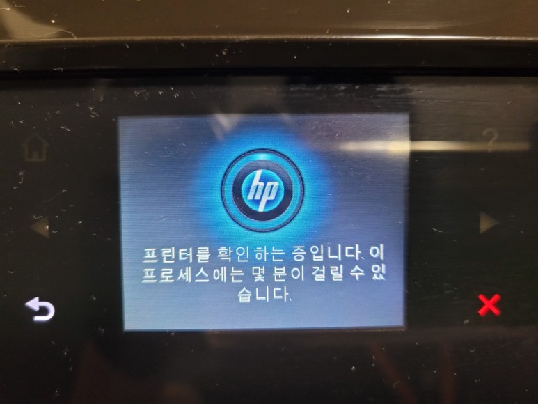새 카트리지 장착 후, 프린터 오류는 사라지고 프린터 확인 중 메세지가 정상적으로 떴습니다.