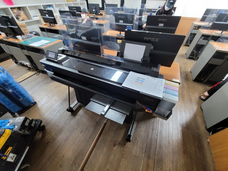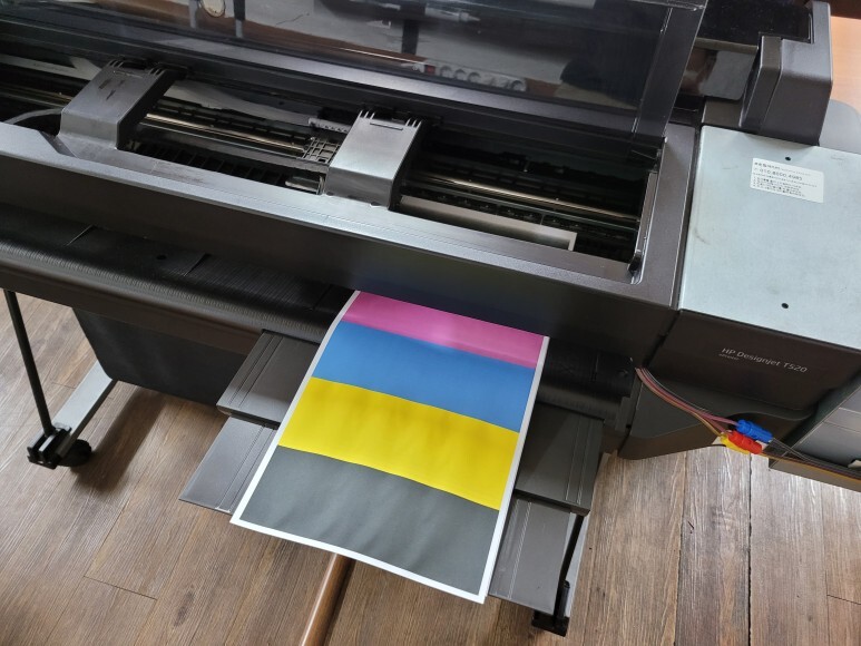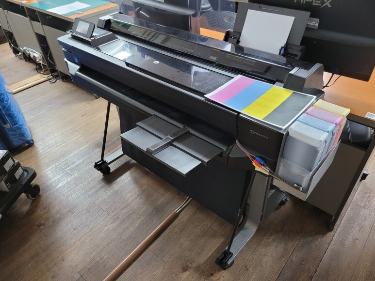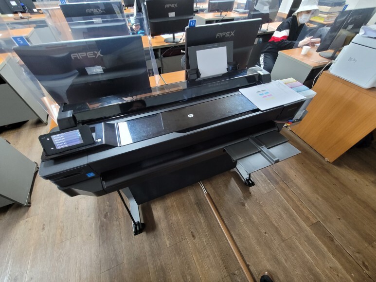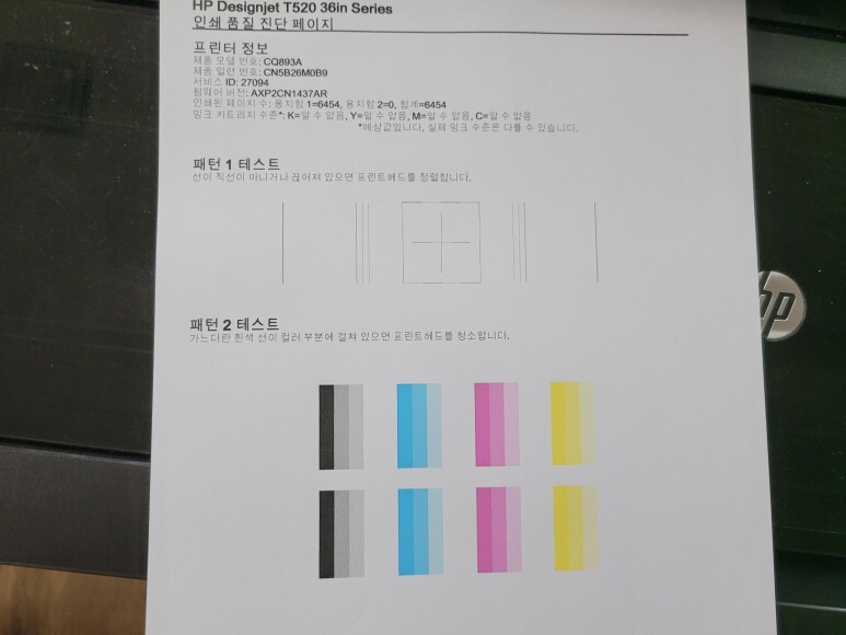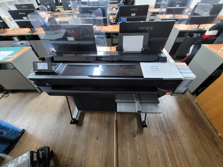 경기도 성남시 분당구 소재 컴퓨터 디자인 학원에서 사용하는 HP T520 36인치 플로터 무한잉크 출력불량으로 출장수리 요청, 스케줄 잡아 이동 수리 완료했습니다.