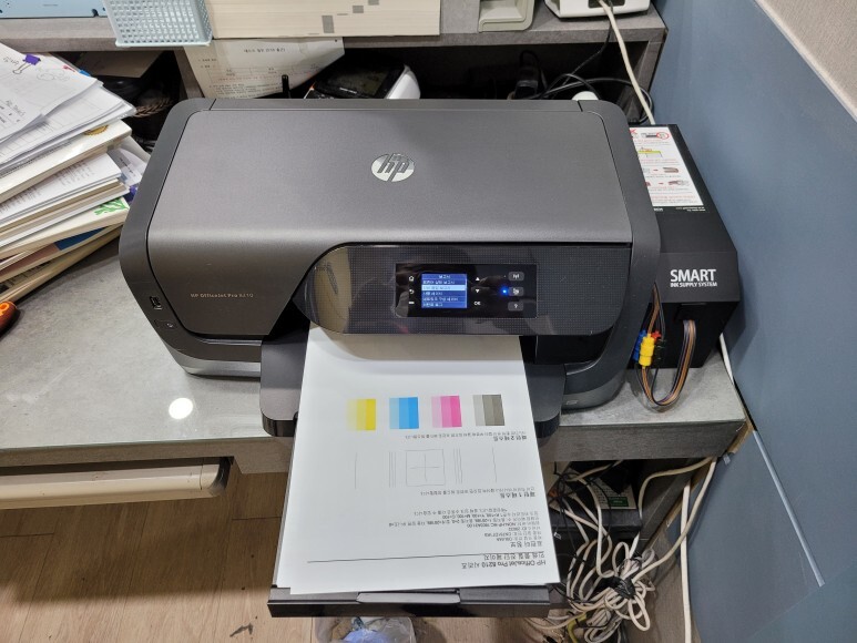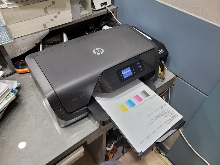경기도 용인시 수지구 소재 영어학원에서 사용하는 유한 4칩 HP 8210 무한잉크 A4 프린터 장비입니다. 카트리지 문제 및 소모품 시스템 문제로 임대형 및 기업형, B2B용 (보험사, 군부대, 학교, 학원, 부동산, 핸드폰매장, 교육사 등등)으로 사용되는 칩없이 구동하는 임대나 기업에 납품되는 기업형 No Chip 무한잉크 장비로 전환 출장수리 요청으로 스케줄 맞춰 방문하여 수리 완료 했습니다.