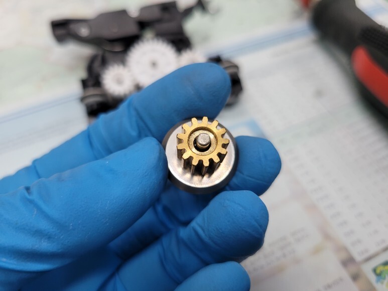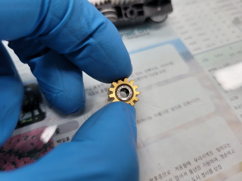 뒷면에 나사 4개를 풀어 커버를 열어 보니 칼날 기어에 크랙의 흔적이 보였습니다.