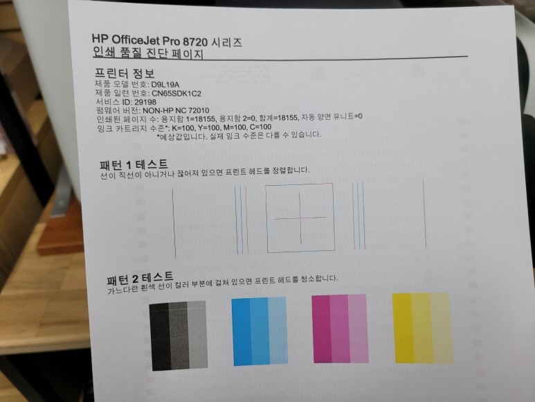 HP 8720 무한잉크 인쇄품질진단페이지 확인했습니다.