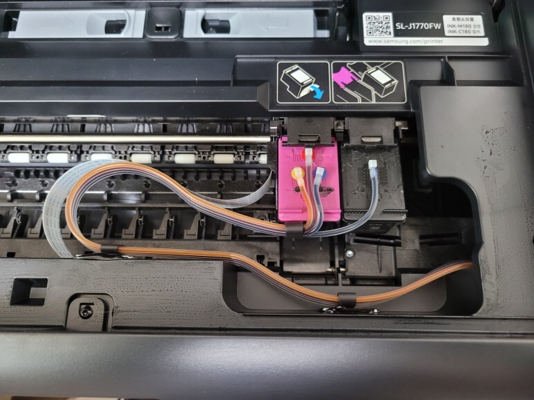 경기 화성시 우정읍 조암에 위치한 삼성 SL-1770FW 사용자인데 카트리지가 너무 빨리 소모되고 비싸고 출력이 불량하여 무한잉크로 전환 수리 요청하여 스케줄 잡아 이동, 무한잉크 장착했습니다.