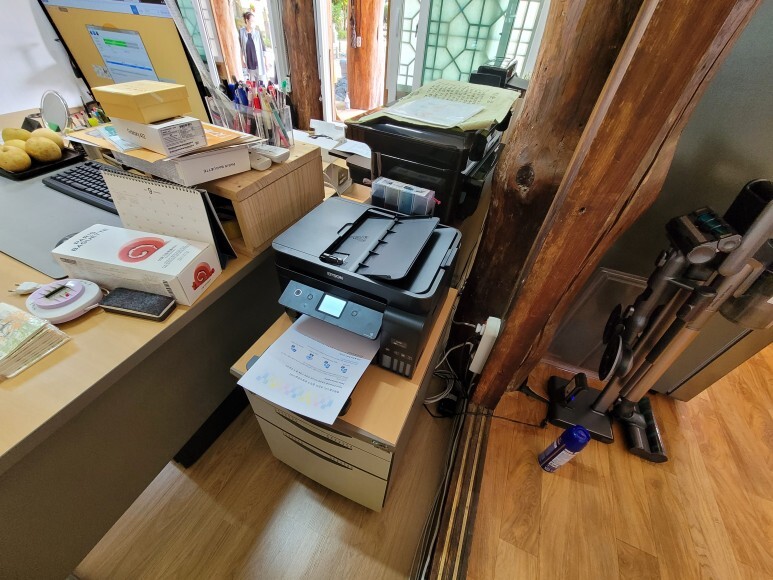 남양주시 와부읍 소재 오래된 절, 사찰 행정담당 사무실인데 공간이 협소하고 출력량을 고려해 이번에는 엡손 정품무한잉크 L6191 (L6190) 팩스복합기를 설치했습니다. 기존 레이저 팩스복합기를 사용하다 출장수리가 너무 잦아 출력량을 고려해 이번에는 엡손 정품무한잉크 L6191 ( L6190)팩스복합기를 설치했습니다. B2B 특가 온라인보다 싸게 구매했습니다.