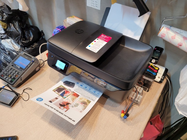 서울 성북구 동소문동에 소재한 상점에서 사용하는 팩스복합기 HP 3830 시리즈, HP 3833 팩스복합기 무한잉크입니다. 온라인으로 구매한 HP 오피스젯 3833 무한잉크인데 출력이 불량하여 온라인업체에 연락하기 힘들고, 판매업체가 전화도 잘 받지 않아 택배로 보낼 수 없는 상황이라 출장 수리를 요청하여 스케줄 잡아 수리 완료해드렸습니다.
