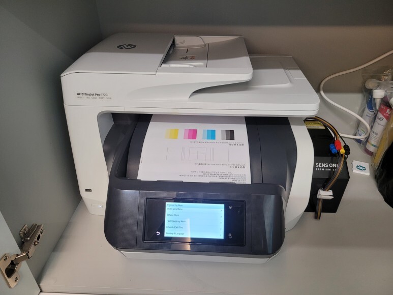 카트리지 문제로 A4 팩스복합기, HP 8720 무한잉크가 멈춰 있었습니다.