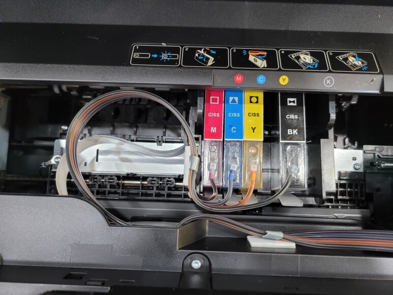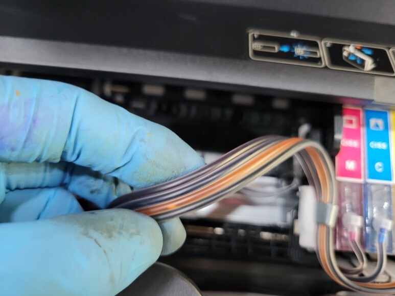 호스 정리를 다시 새롭게 하고, 잉크를 호스 및 카트리지 내부에 가득 채웠습니다.