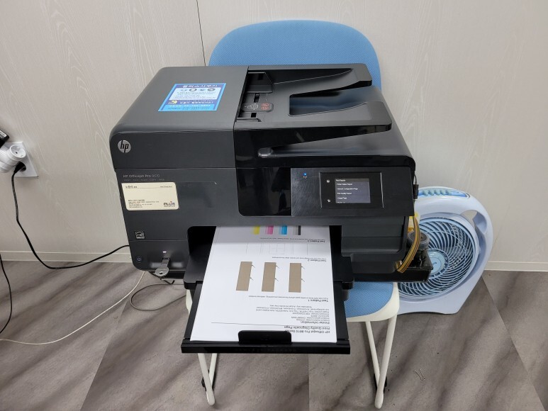 경기도 파주시 촬영 어흥세트장에서 사용하는 HP Officejet Pro 8610 팩스복합기 무한잉크 사용중인데 Ink cartridges depleted (잉크 카트리지 소모) 문제로 멈춰 출장수리 요청, 스케줄 잡아 이동, 수리완료했습니다.