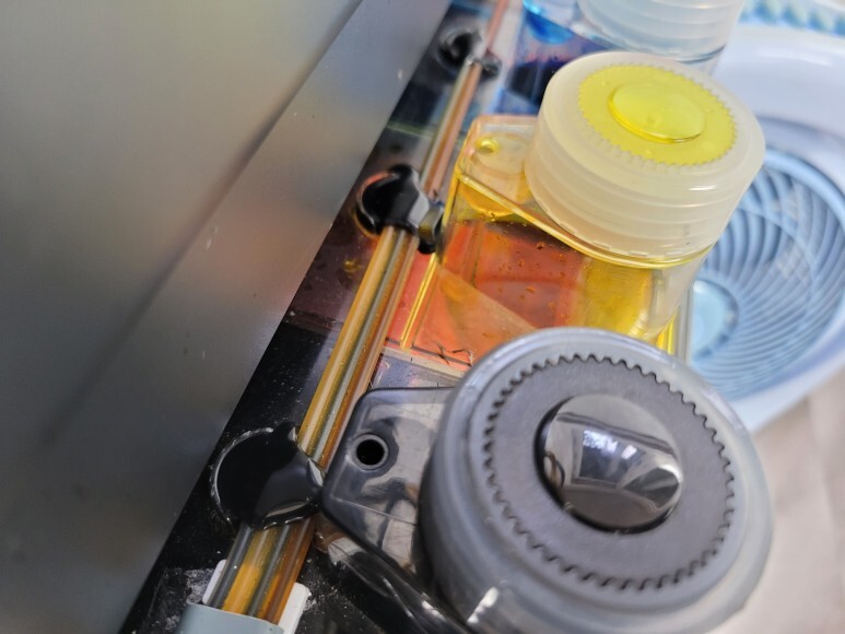 HP 8610 무한잉크 카트리지 고무 패킹이 노후 되어 새로 교체하고 ㄱ자 피팅도 교체 호스 연결했습니다.