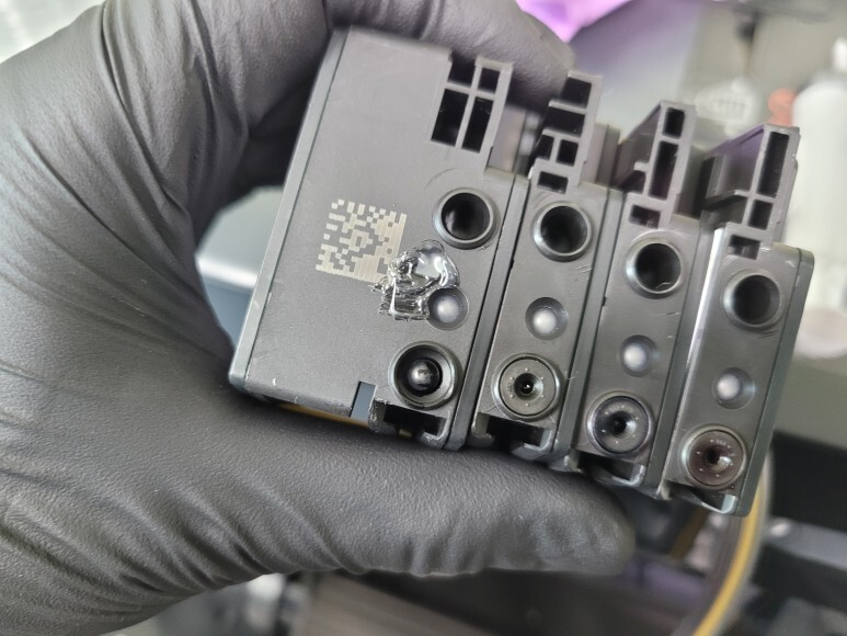 3) 미세한 노즐 막힘은 헤드 챔버 부분을 터지게 합니다. 사람도 뇌혈관이 막히면 터져 사망에 이르게 됩니다. 헤드도 노즐이 막히면 헤드가 터져 잉크가 흐르고 교체해야 하는 비용을 지불하거나 폐기해야 합니다. (중환자수술 또는 뇌출혈사망)