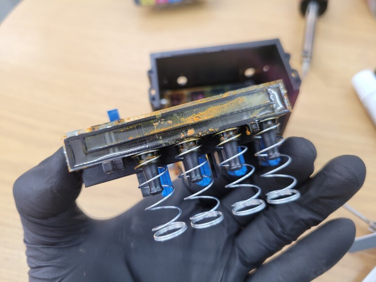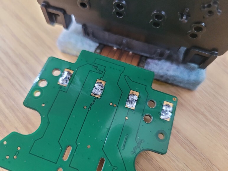 헤드 PCB 오염 크리닝 하고 센싱 스프링 오염으로 모두 제거 납땜하여 쇼팅했습니다.