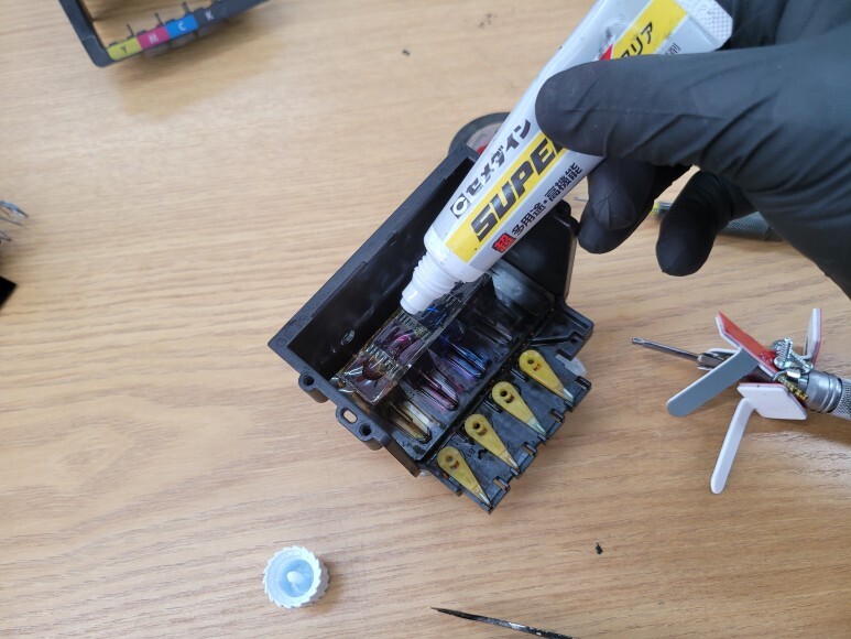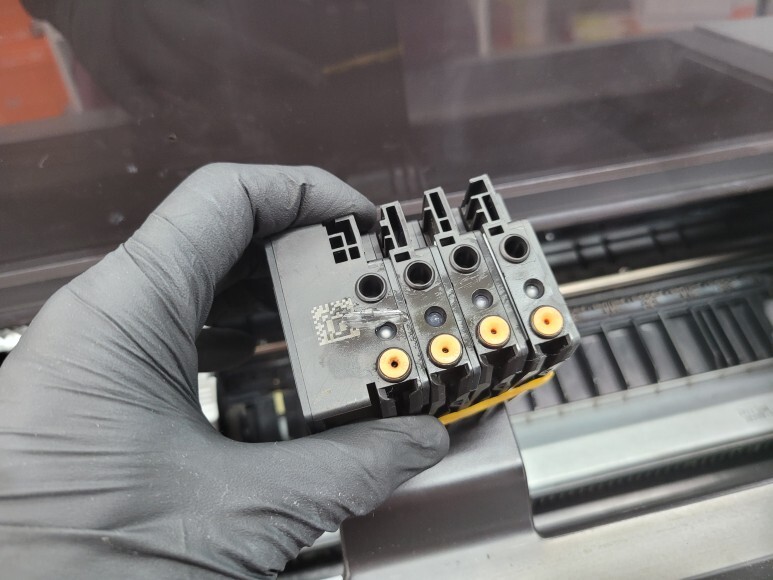 헤드 챔버를 터짐 정도를 보기 위해 점검. 아주 살짝 잉크가 누수되어 수리를 바로 진행했습니다.