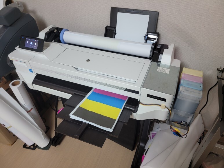 경남 창원시 소재, HP T525 24인치 플로터 무한잉크 All 안료잉크 세팅 사용 업체로 출력상태 불량 및 잉크 카트리지 소모됨 문제로 출장수리 요청, 스케줄 잡아 이동하여 출장수리 완료했습니다.