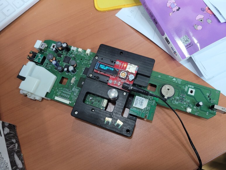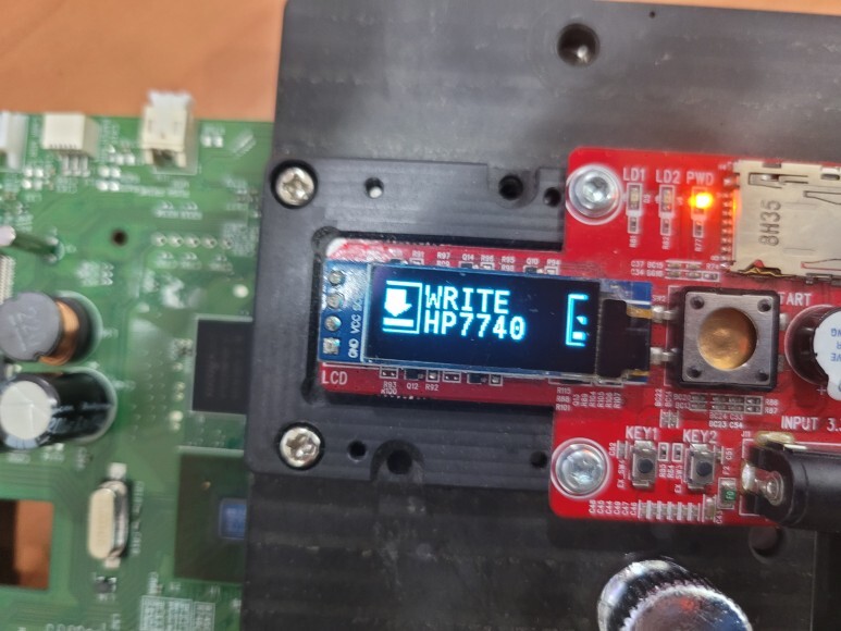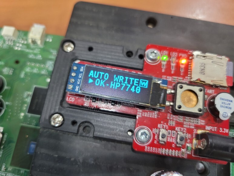 메인보드를 HP 7740에서 떼어 펌라이팅 지그에 물렸습니다.