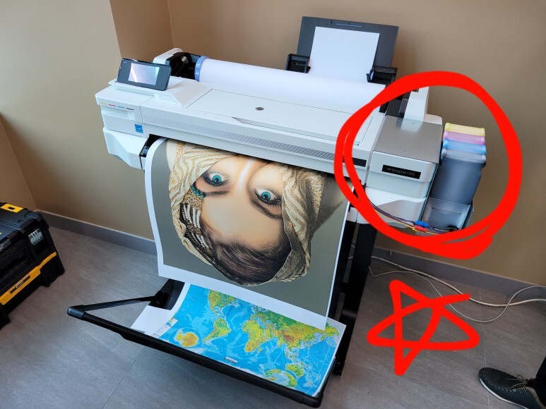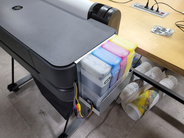 HP 디자인젯 T200 (T230 T250) T600 (T630 T650) 무한잉크(No Chip) 장치를 위한 공급기 받침대입니다.