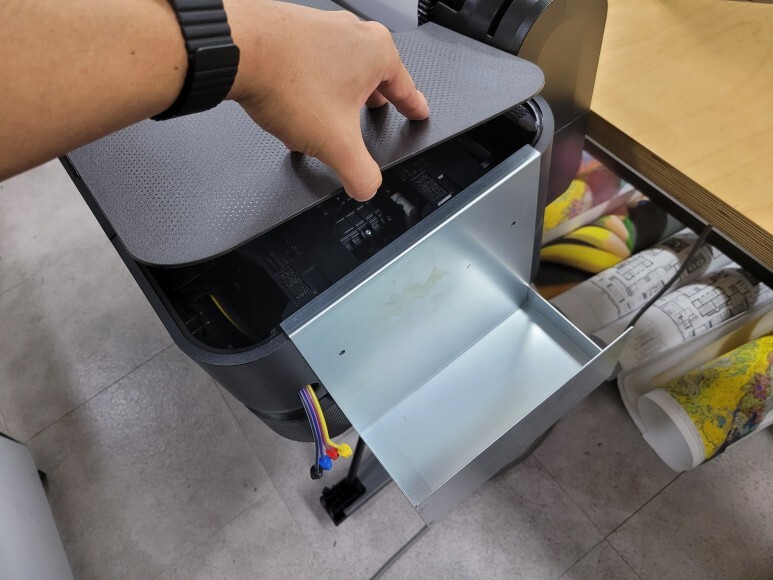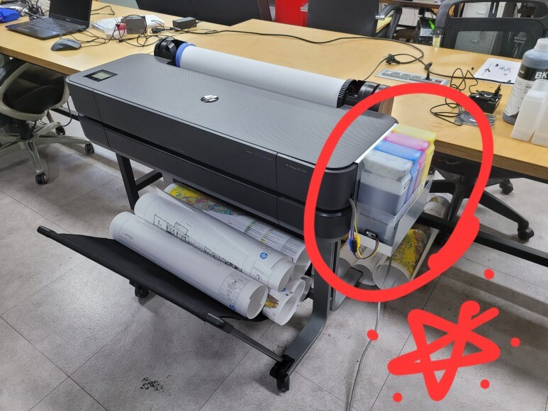 기존 HP 디자인젯 T120 T520 무한잉크공급기 받침대에서 크게 변경된 부분은 없습니다. 기존 디자인을 그대로 유지하고, 거치부분만 짧게 가져 갔습니다.