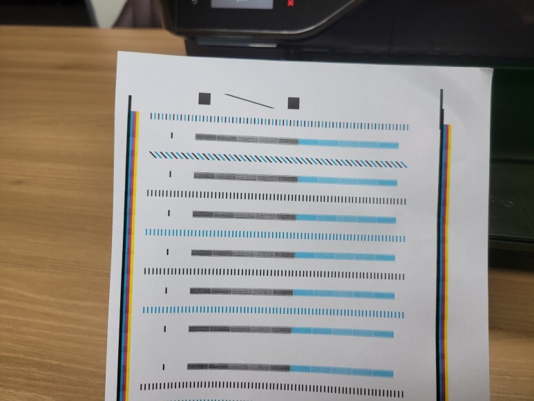 HP OfficeJet 7612 무한잉크 A3 팩스복합기 932 933 헤드 수리 후에 정상적으로 헤드 정렬 페이지가 출력되었습니다.