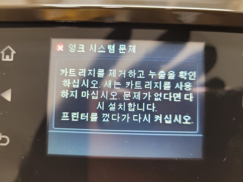 HP OfficeJet 7612 무한잉크 A3 팩스복합기 액정에 잉크 시스템에 문제 오류가 떠있습니다.