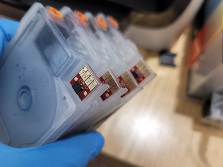 삼성 SL-J3560FW 무한잉크 카트리지에 유한 4칩이 장착되어 있어서 모두 제거해 없애고 카트리지도 신규로 교체 했습니다.