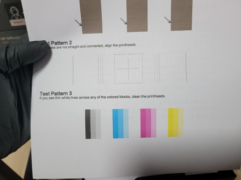 OOBE RESET 초기화 후에 정상적으로 헤드 정렬 페이지가 출력되어 나왔습니다.
