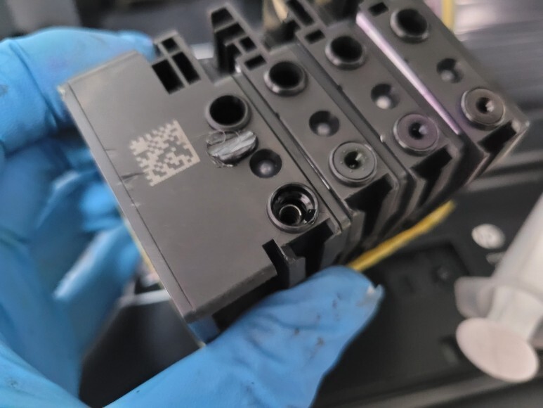 3) 미세한 노즐 막힘은 헤드 챔버 부분을 터지게 합니다. 사람도 뇌혈관이 막히면 터져 사망에 이르게 됩니다. 헤드도 노즐이 막히면 헤드가 터져 잉크가 흐르고 교체해야 하는 비용을 지불하거나 폐기해야 합니다. (중환자수술 또는 뇌출혈사망)