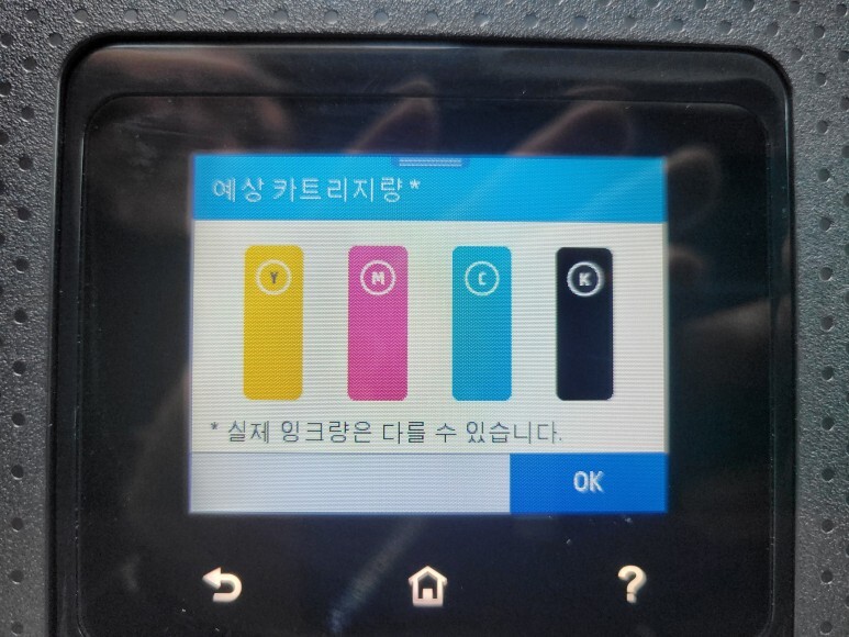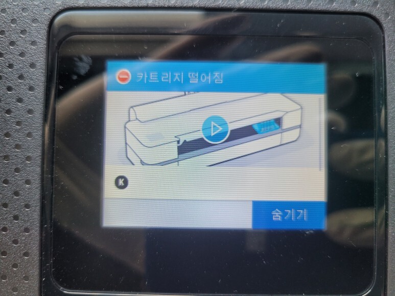 그동안 사용되고 버려진 카트리지가 있었고 최근 장착된 BK 블랙 카트리지도 소모되어 멈춰 있었습니다.