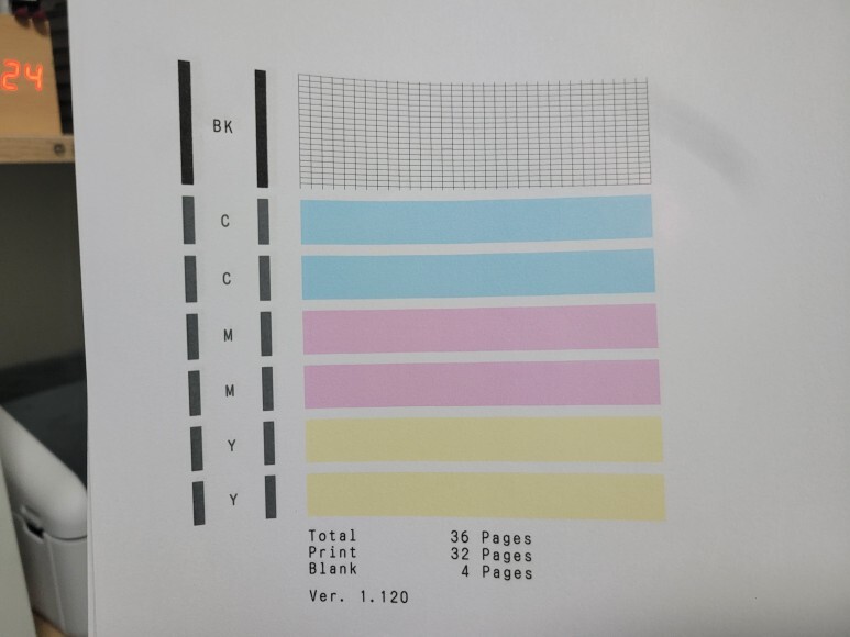 2) 매일 체크하지 않으면 노즐이 미세하게 막히면 헤드 청소를 해야 하는데 헤드청소시 이때, 잉크가 정말 많이 사용됩니다. 잉크 낭비까지 생각한다면 평소 출력해 체킹하는 게 좋습니다. (고지혈/동맥경화시 의료비가 듭니다)