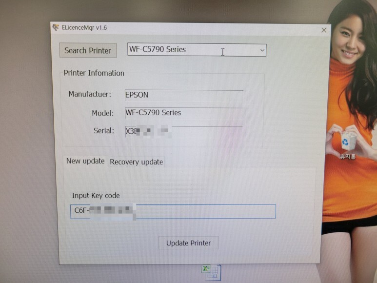 칩없이 구동되는(Chilpess Solution / No Chip) 위한 인증프로그램을 실행하여 인증키를 입력했습니다. 인증키를 입력하면 추후 업데이트시 복구가 가능한 백업 복구 파일이 생성됩니다. 잘 보관해야 둬야 합니다. 전원을 끄고 재부팅, 칩없이 구동되는(Chilpess Solution / No Chip) 기업형 무한잉크 장치로 전환되었습니다.