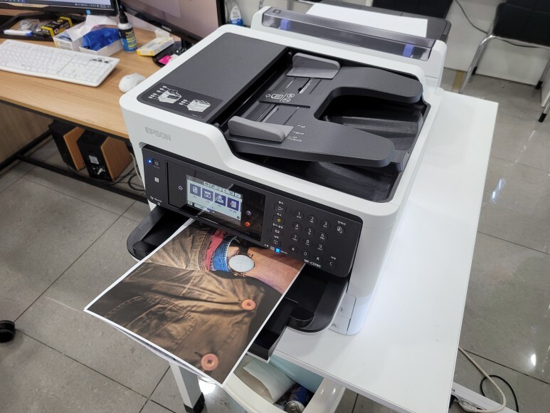 영어학원에서 사용하는 엡손 WF-C5790 팩스복합기 준고속기인데 칩없이 구동하는 기업형 무한잉크 장착을 요청하여 스케줄 잡아 이동, 출장장착 완료했습니다. 별도 옵션으로 대용량 외부 무한잉크 장치와 폐잉크통을 외부에 장착하지는 않았습니다. 팩방식 무한충전 프리필로 장착했습니다.