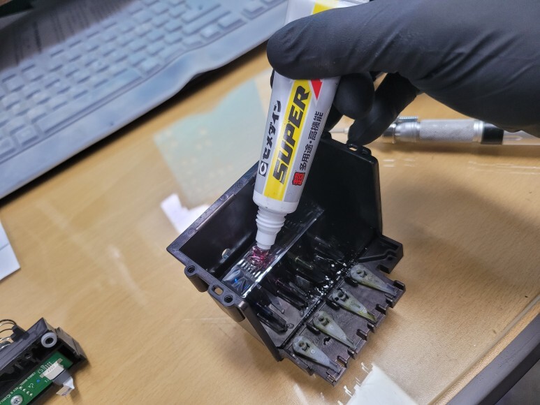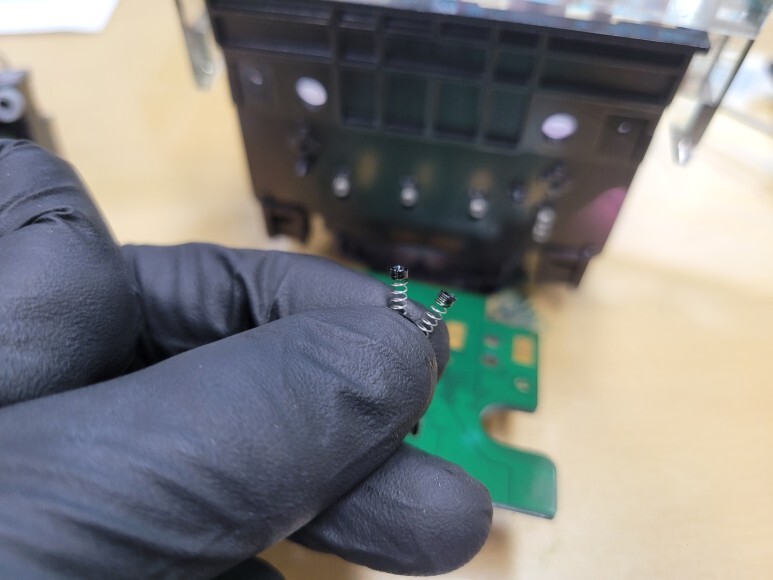 ● 프린터 헤드 분해, 칩판부 에어슈팅라인 비닐탈락 수리