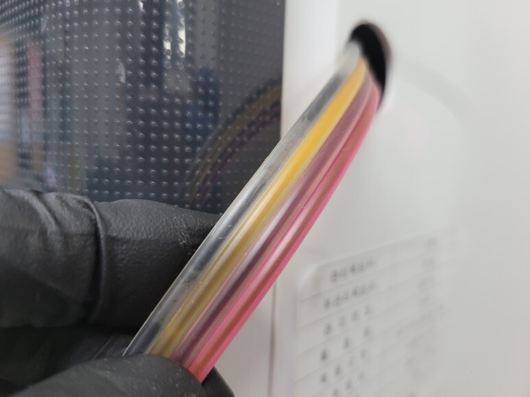 ● 호스 절단, 하우징 타공 및 잉크 퀵차단밸브 장착, 잉크경화 호스 세척
