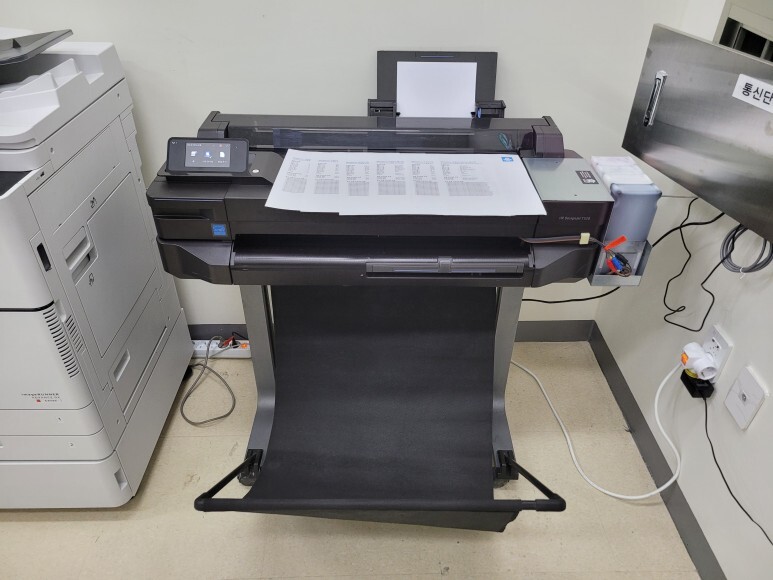 경기도 평택시 고덕 소재, 건축 건설관련 업체에 도면 출력용으로 1년 약정(자동연장), 무제한 출력, CMS 카드 자동 결재 계약으로 HP DesignJet T520 24인치 A1 플로터로 무한잉크 세팅해서 임대/레탈 설치했습니다.