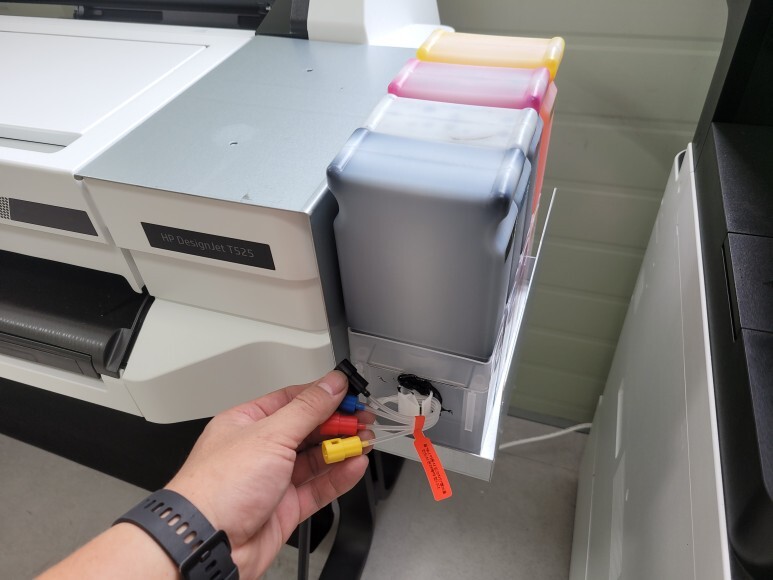 부산광역시 기장군 임랑리 소재 , 건설건축 현장사무실에서 도면출력용으로 사용하는 HP 디자인젯 T525 36인치 A0 플로터 무한잉크출장설치 요청하여 스케줄 잡아 이동, 출장 설치완료했습니다.