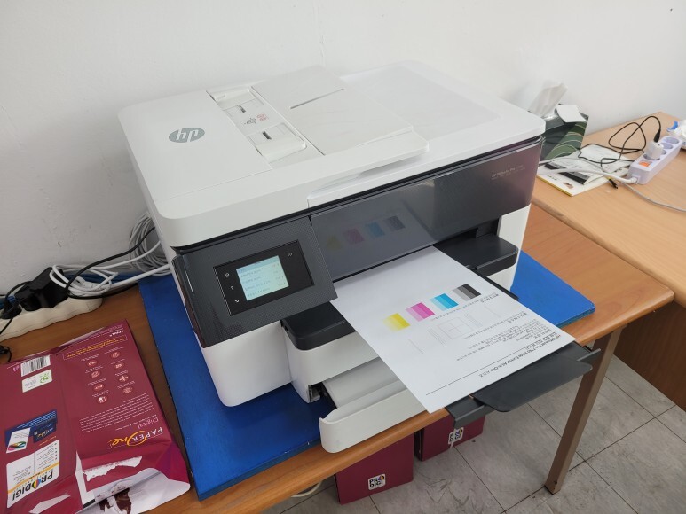 경기도 광주시 오포 매산동 소재, 전기관련업 사무실에서 도면출력용으로 사용하는 A4 A3 2단급지함 팩스복합기 HP 7740 무한잉크로 업그레이드 및 타사 칩 감지됨, 잦은 카트리지 문제 및 소모품 시스템 문제로 멈춰버린 유한 4칩 HP 7740 무한잉크 장비를 기업형, B2B용 (보험사, 군부대, 학교, 학원, 부동산, 핸드폰매장, 교육사 등등)으로 사용되는 칩없이 구동하는 기업형 No Chip 무한잉크 장비로 전환 출장수리 요청으로 스케줄 맞춰 방문하여 수리 완료 했습니다.
