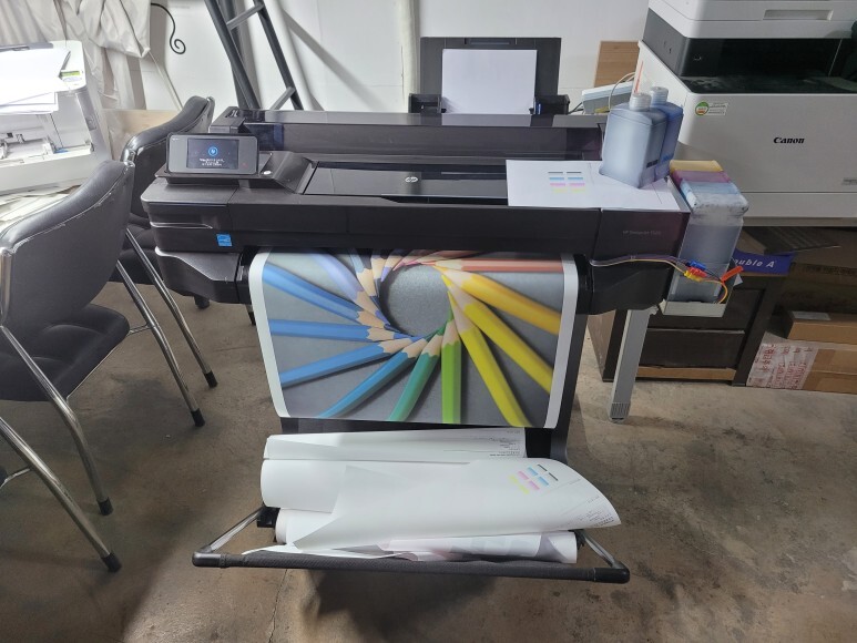 HP 디자인젯 T120, T125(T130), T520, T525(T530) 24인치 36인치 플로터는 건축/건설현장에 도면출력용으로 많이 설치되지만 출력POP 및 미술학원 , 학교, 의상패턴 출력용으로 가장 많이 출고되는 모델입니다.