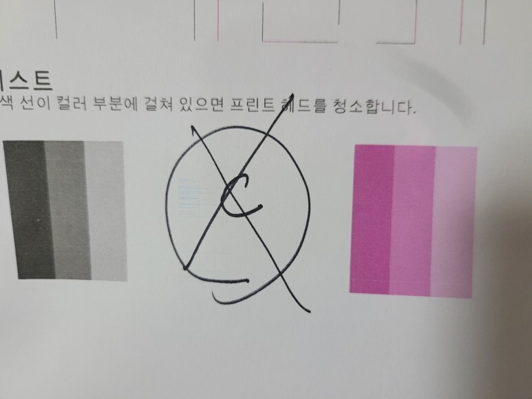 출력불량 및 잉크 카트리지 소모됨 문제로 전체 점검 필요 이유 :